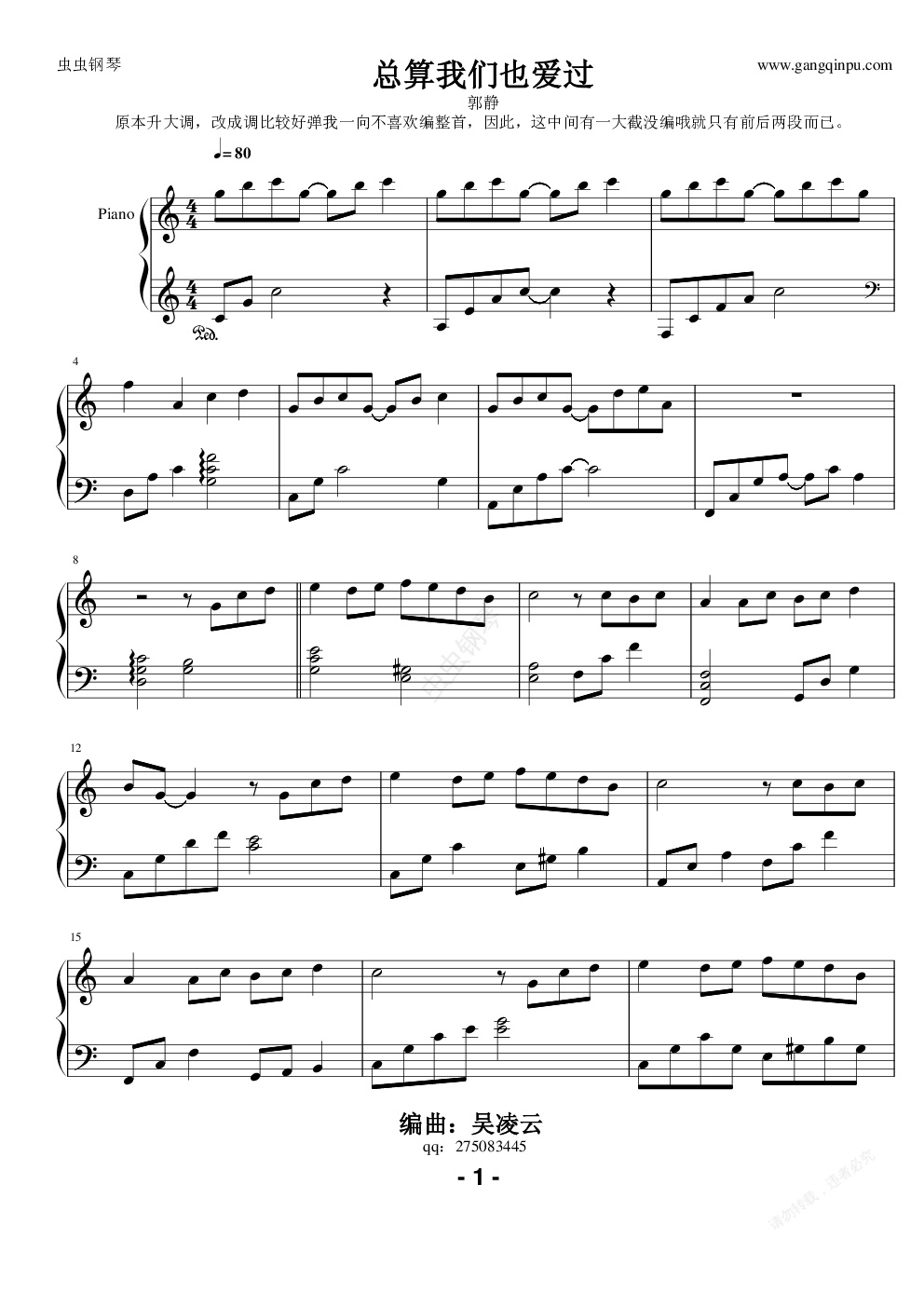 钢琴谱:总算我们也爱过 郭静 吴凌云编曲版