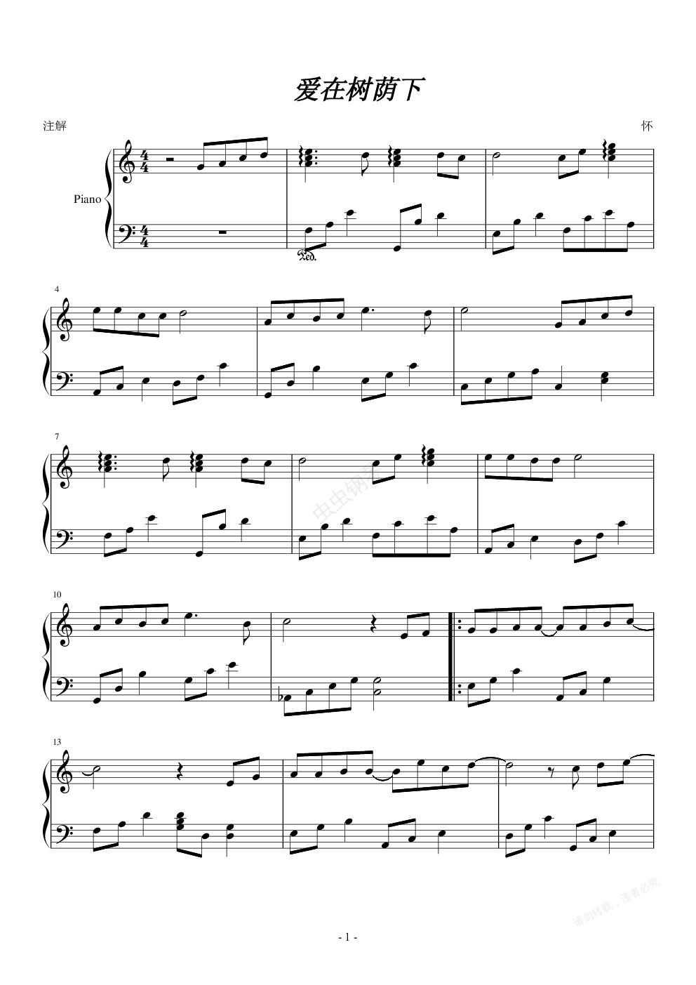 钢琴谱:《爱在树荫下》