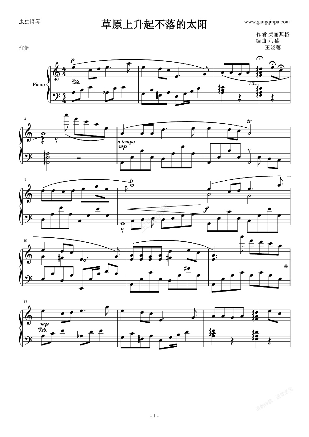 钢琴谱:草原上升起不落的太阳 超级改编版