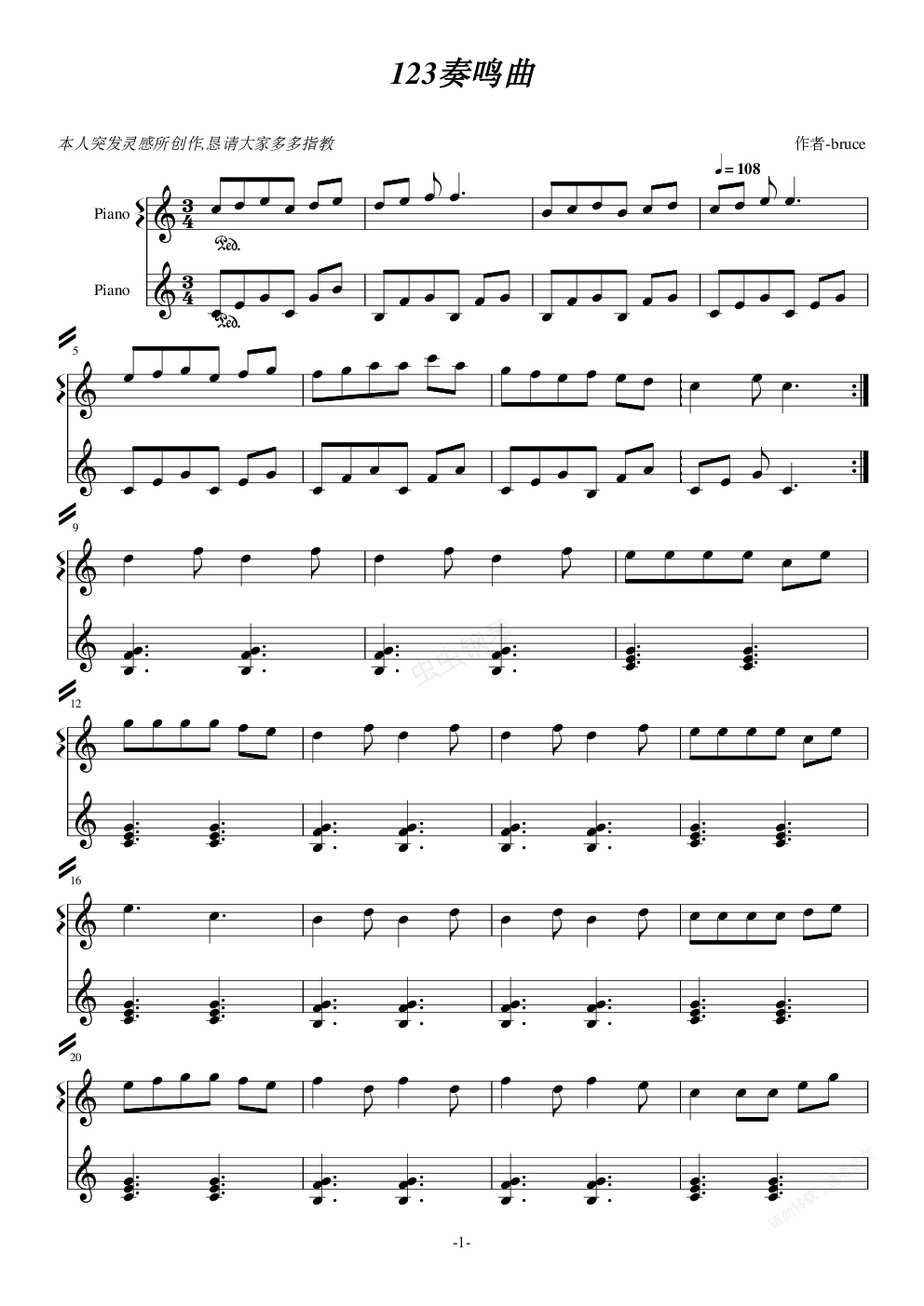 钢琴谱:123奏鸣曲