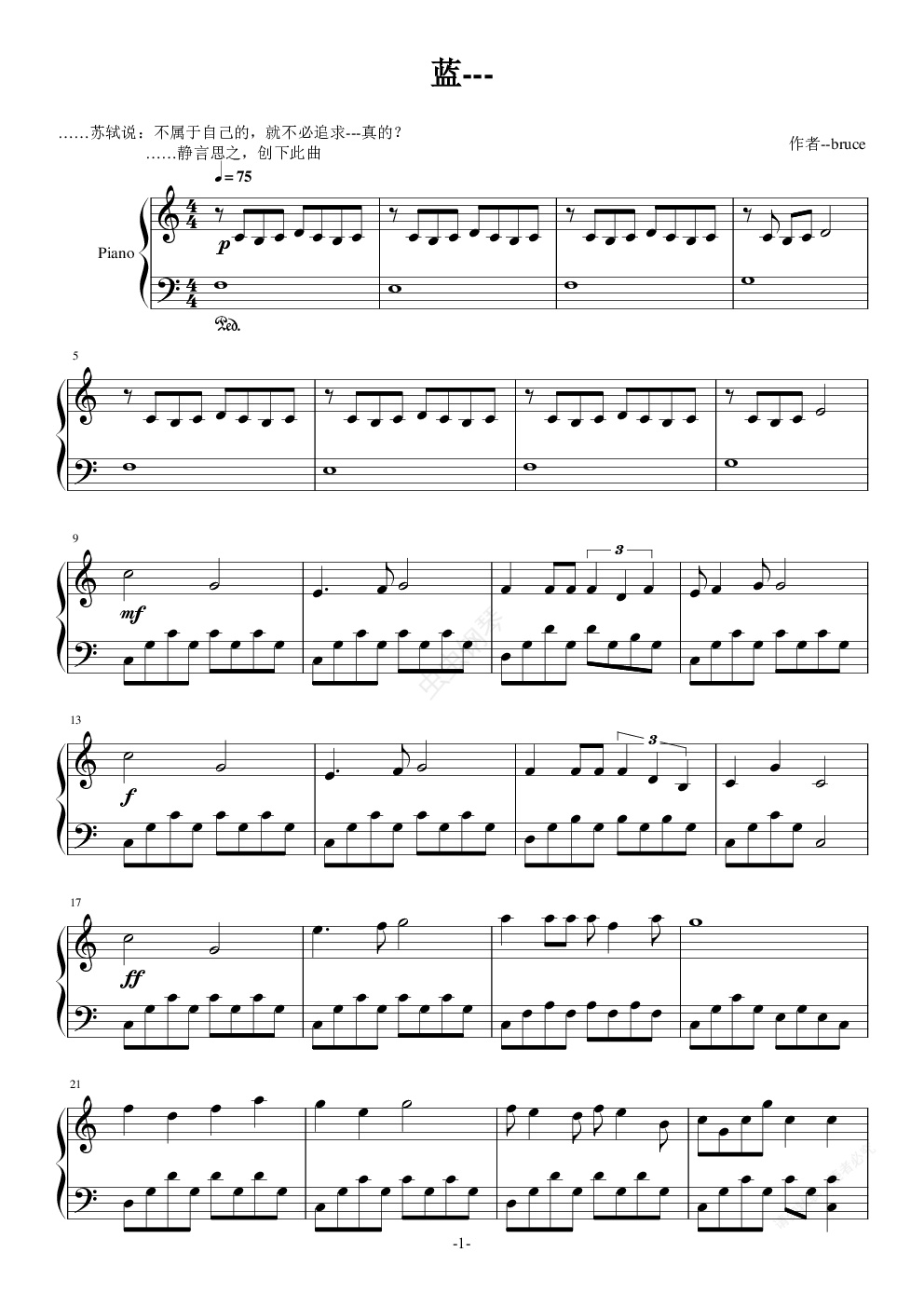 钢琴谱:蓝---