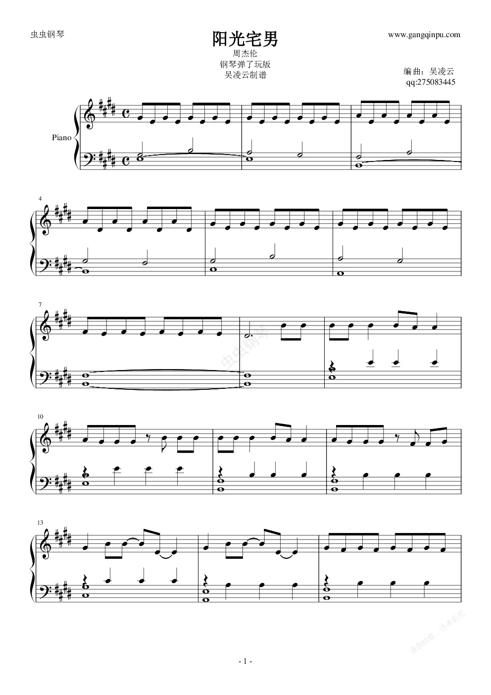 钢琴谱:阳光宅男 周杰伦 吴凌云编制版