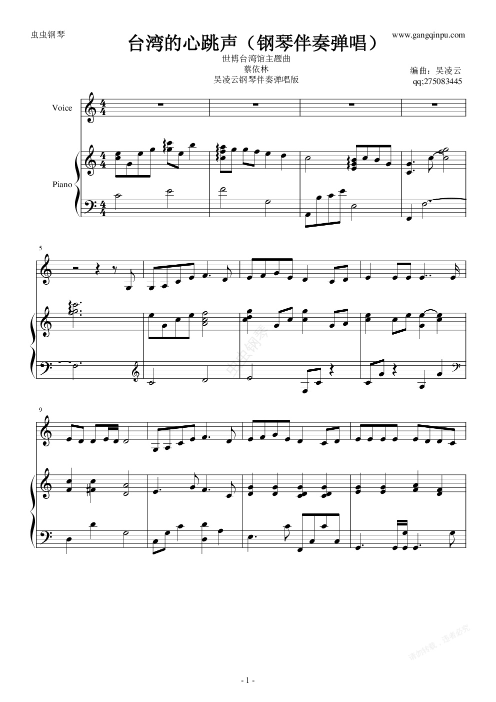钢琴谱:台湾的心跳声(伴奏)世博会台湾馆主题曲 蔡依林