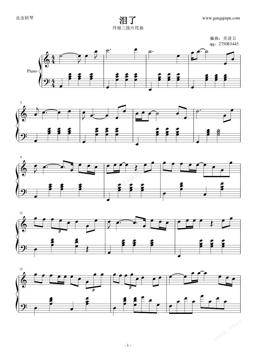 钢琴谱:泪了 曾沛慈 《终极三国》片尾曲