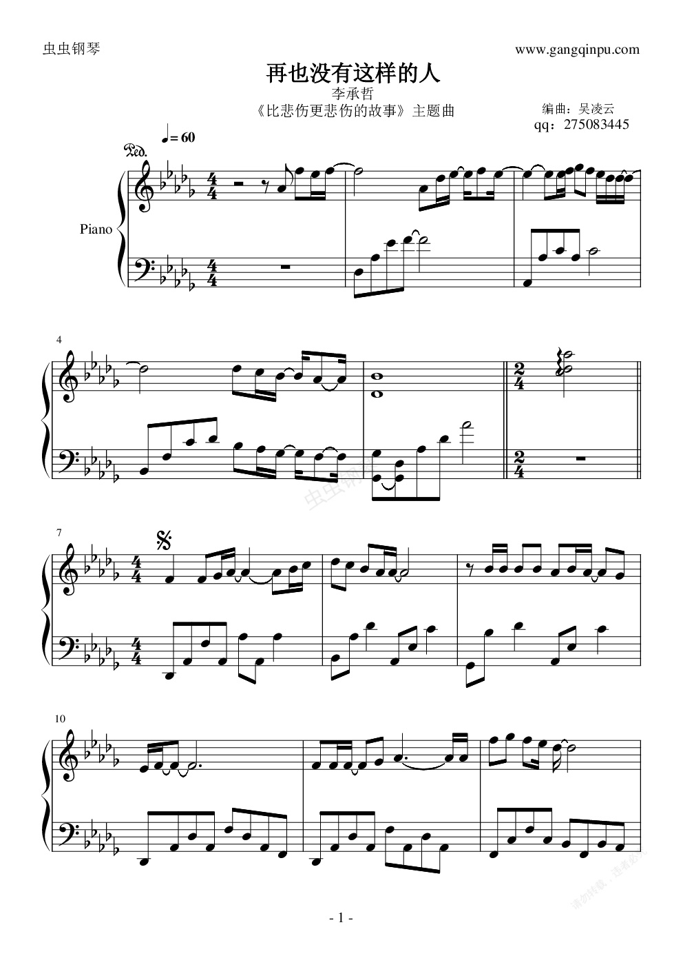 钢琴谱:再也没有这样的人 李承哲 《比悲伤更悲伤的故事》主题曲