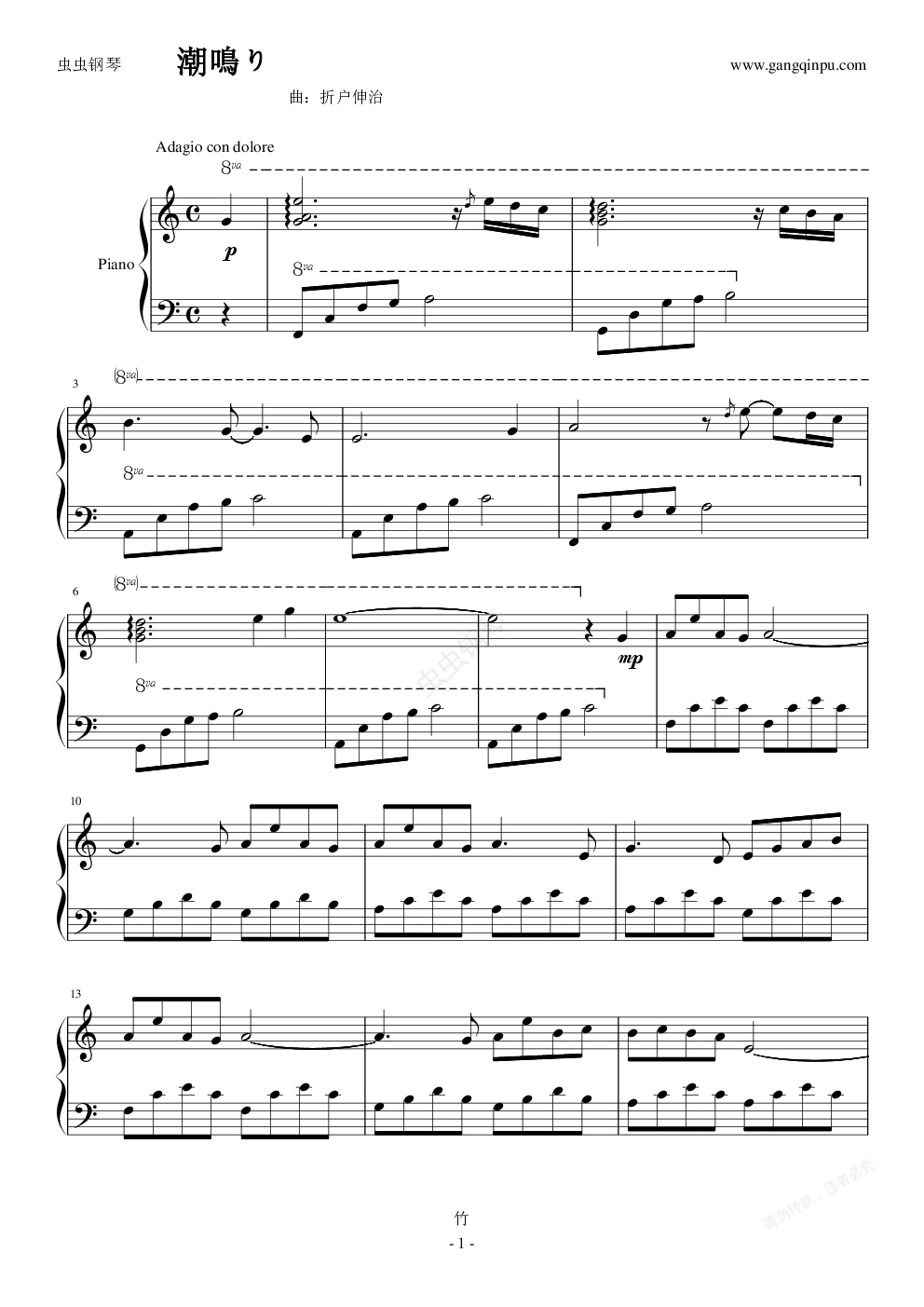 钢琴谱:「CLANNAD」潮鳴り( 纯钢演奏版)