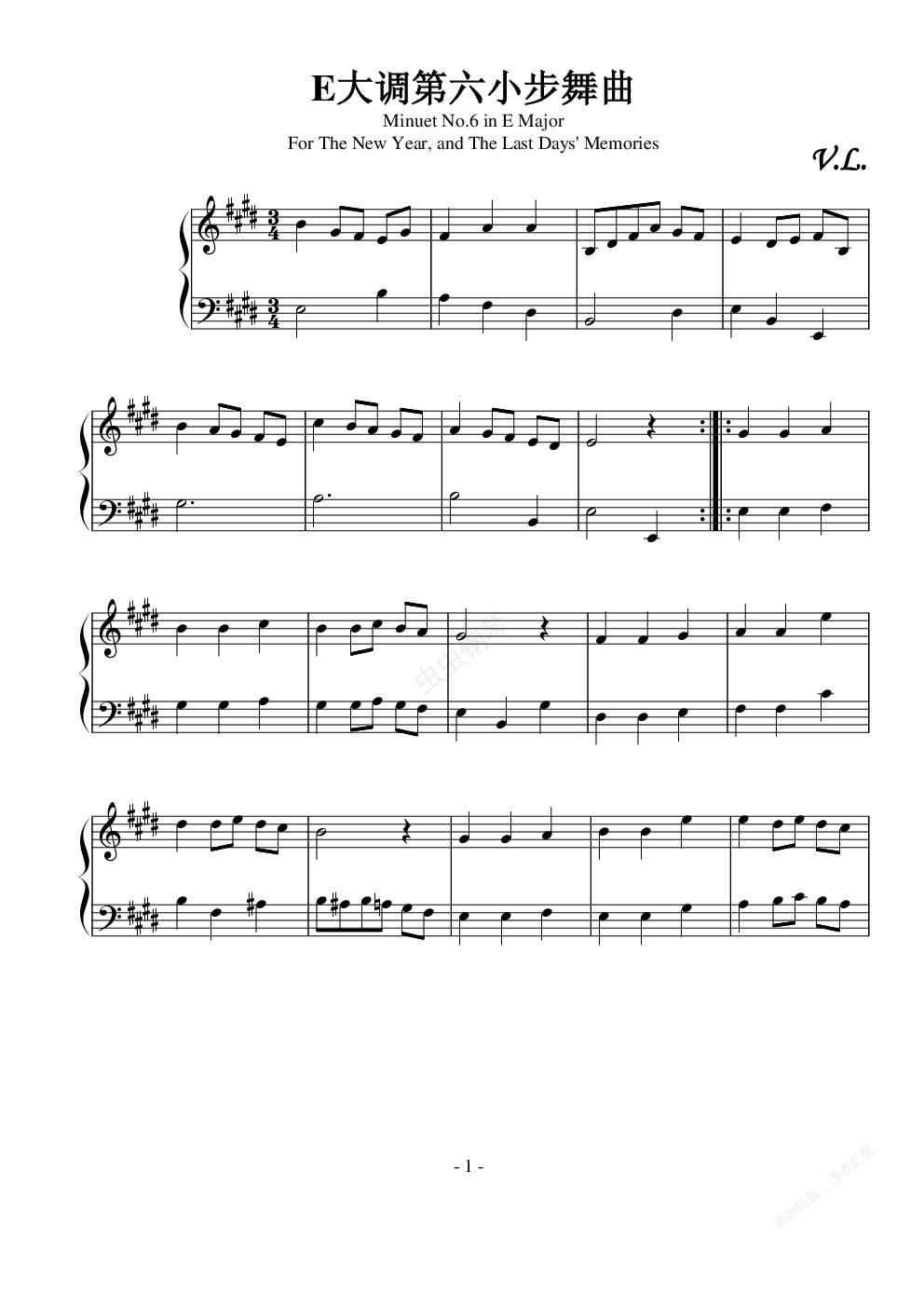 钢琴谱:E大调第六小步舞曲