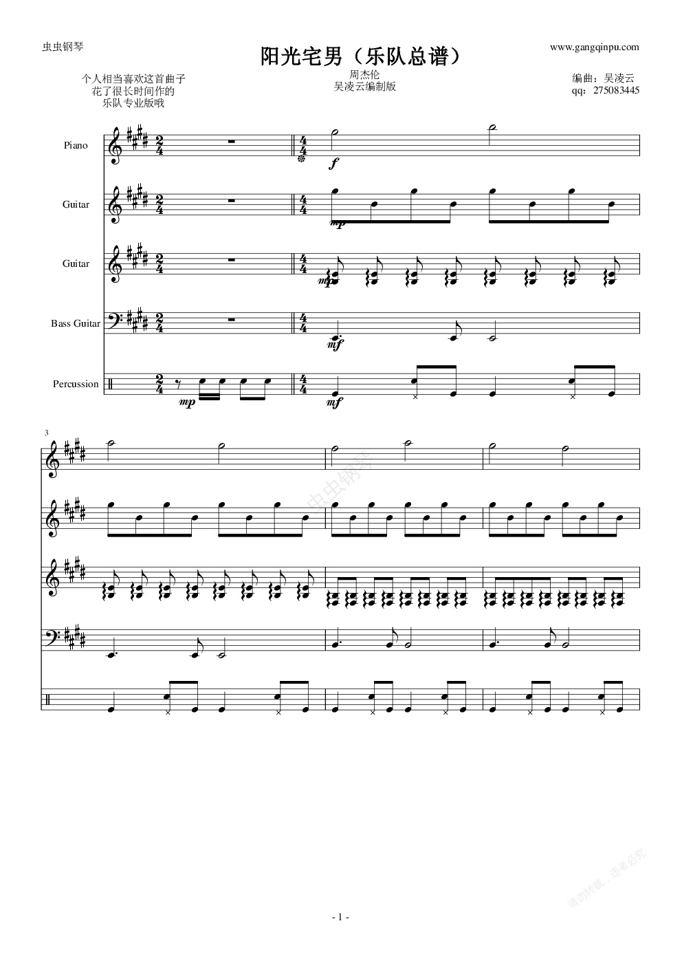 钢琴谱:阳光宅男 周杰伦 乐队版(乐队谱)