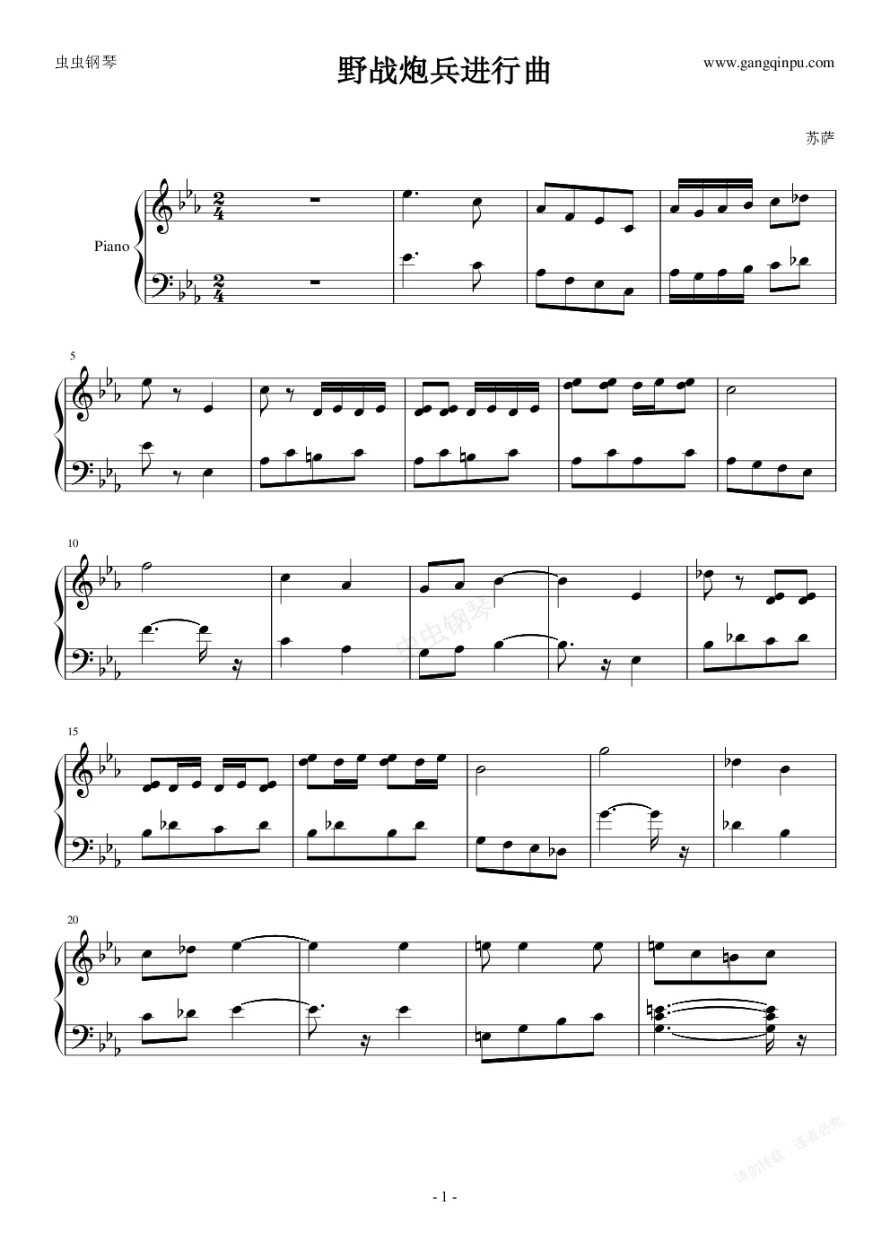 钢琴谱:野战炮兵进行曲