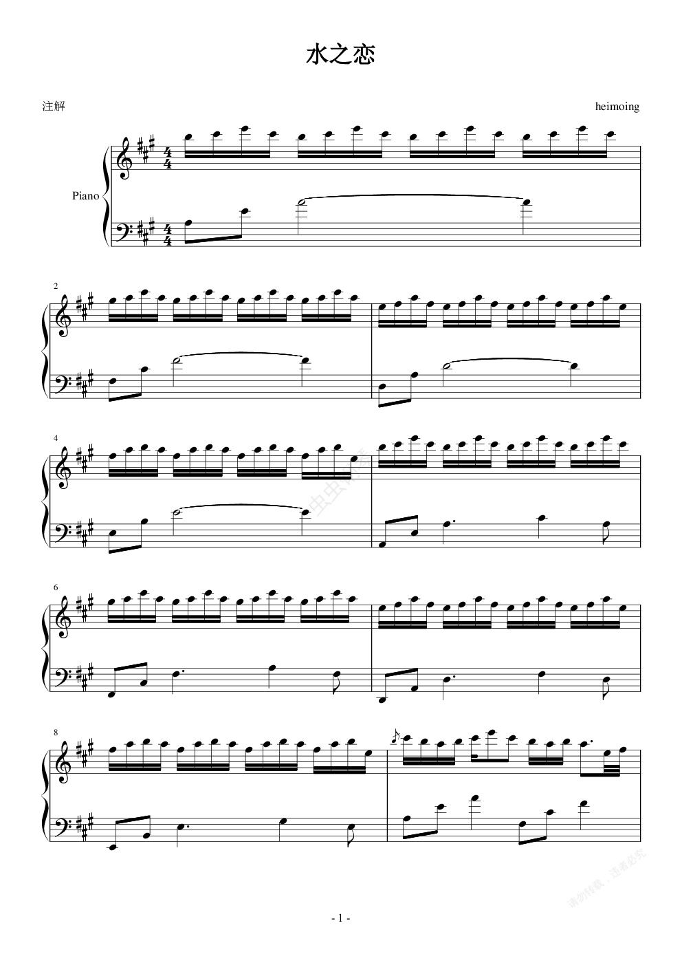 钢琴谱:水之恋