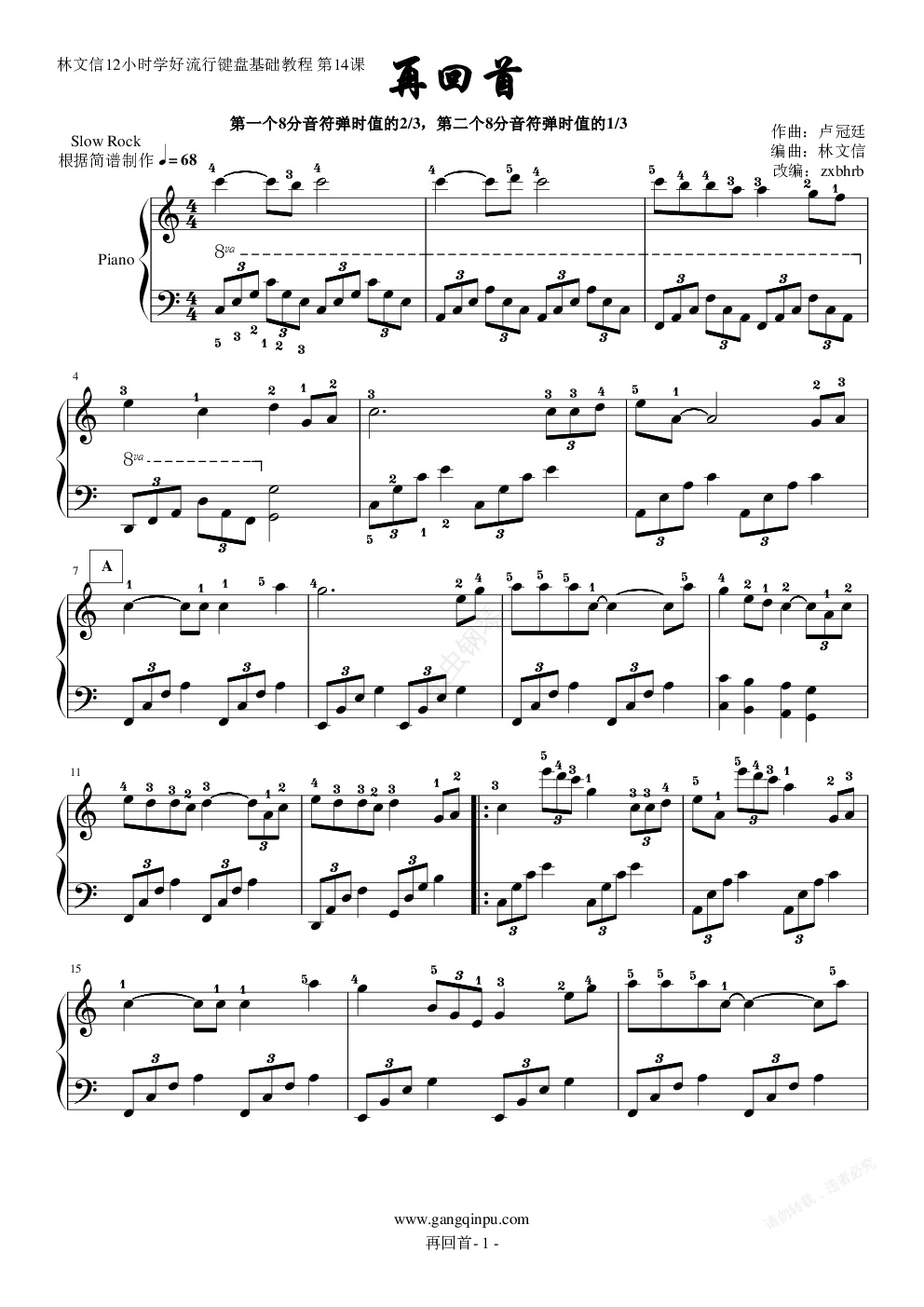 钢琴谱:《再回首》-指法版
