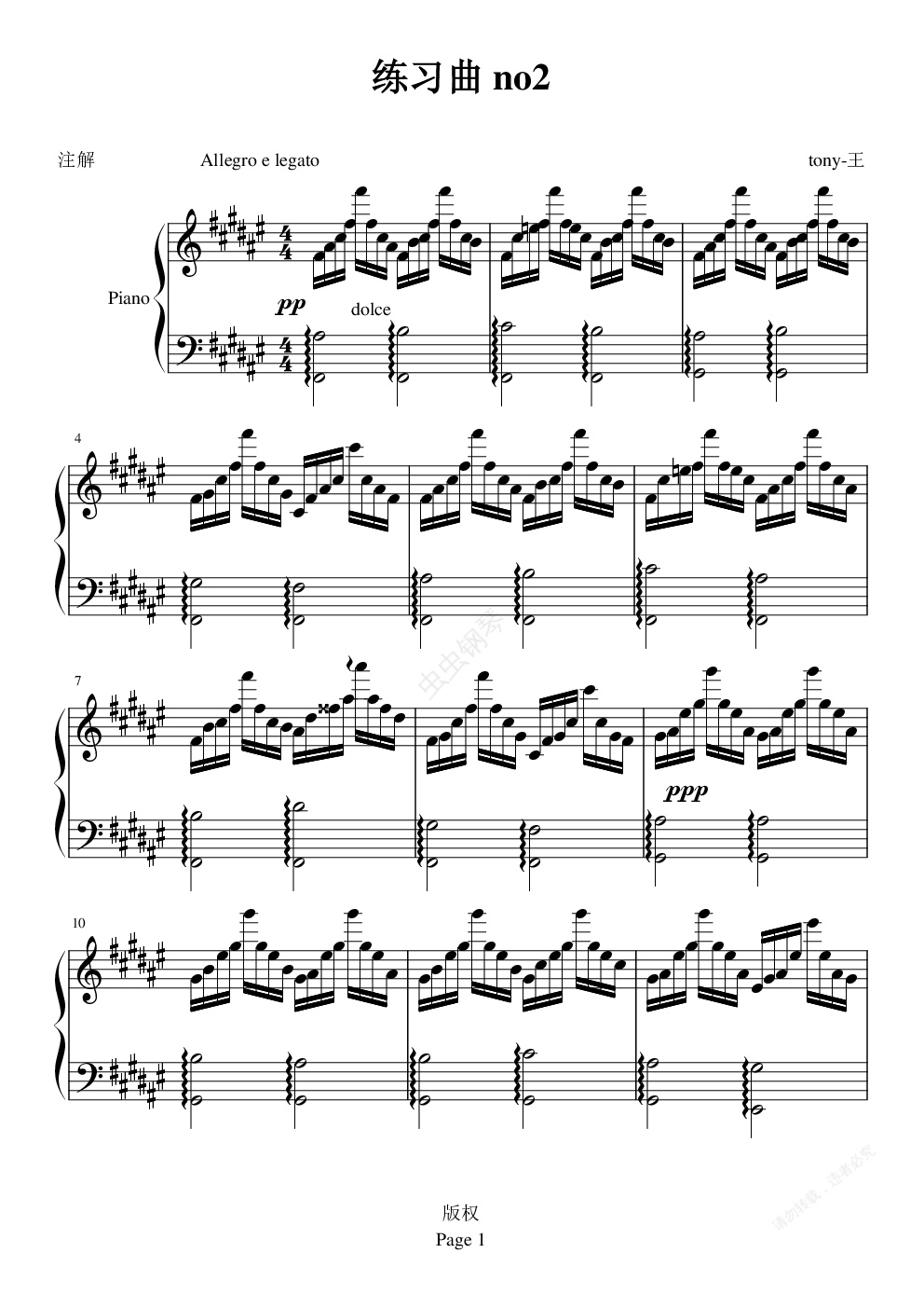 钢琴谱:练习曲no2