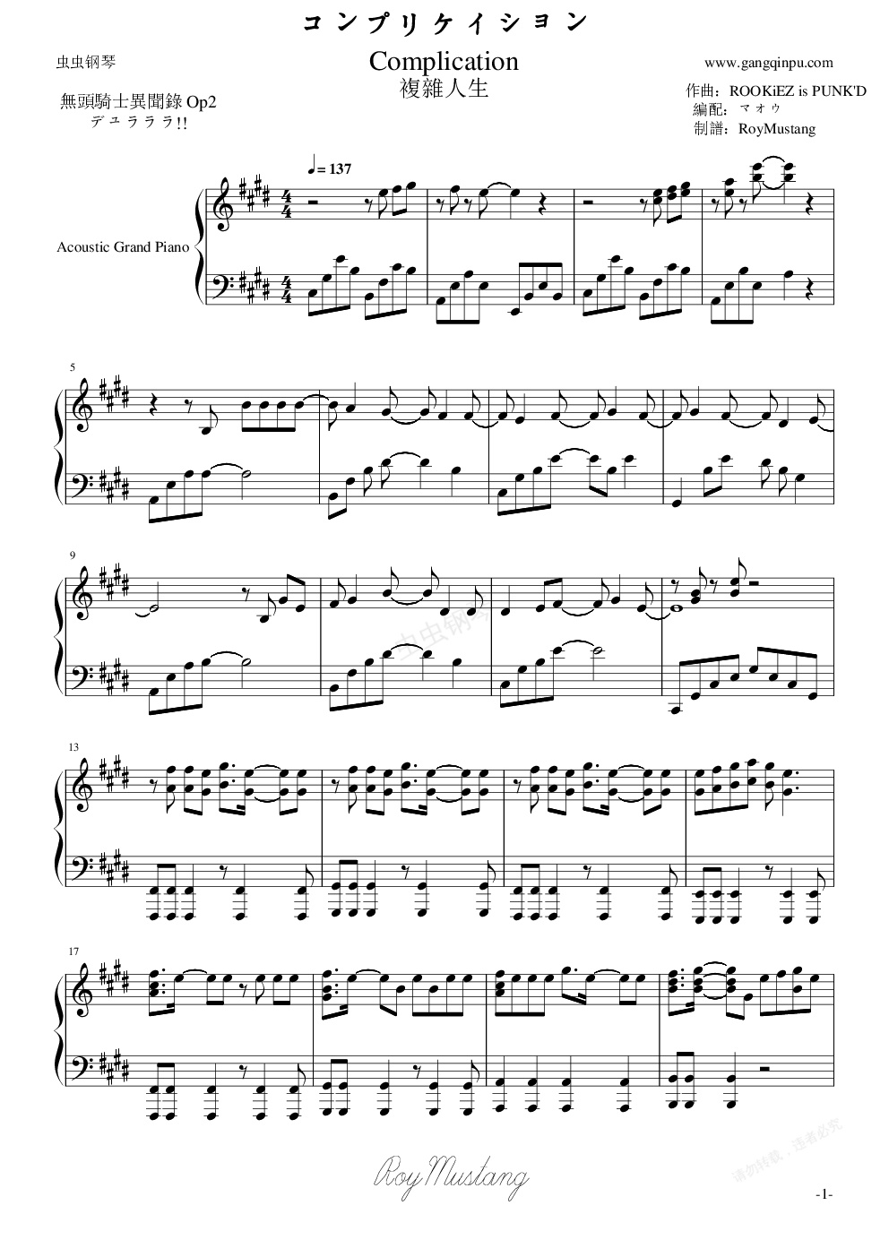 钢琴谱:[無頭騎士異聞錄]複雜人生