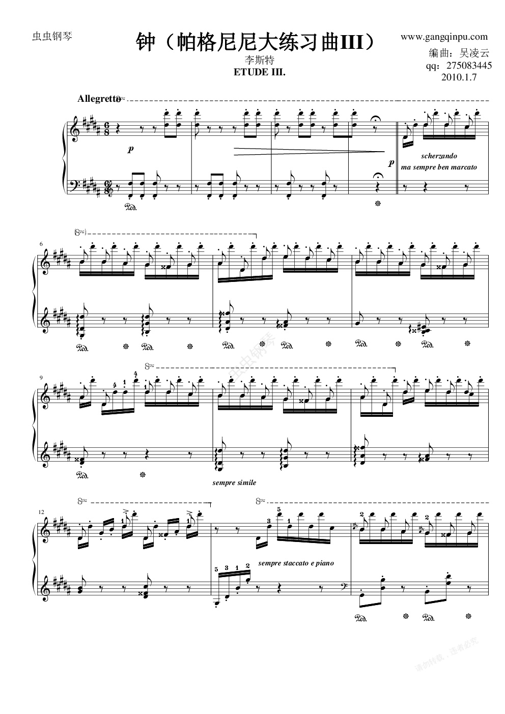 钢琴谱:钟(帕格尼尼大练习曲III)李斯特