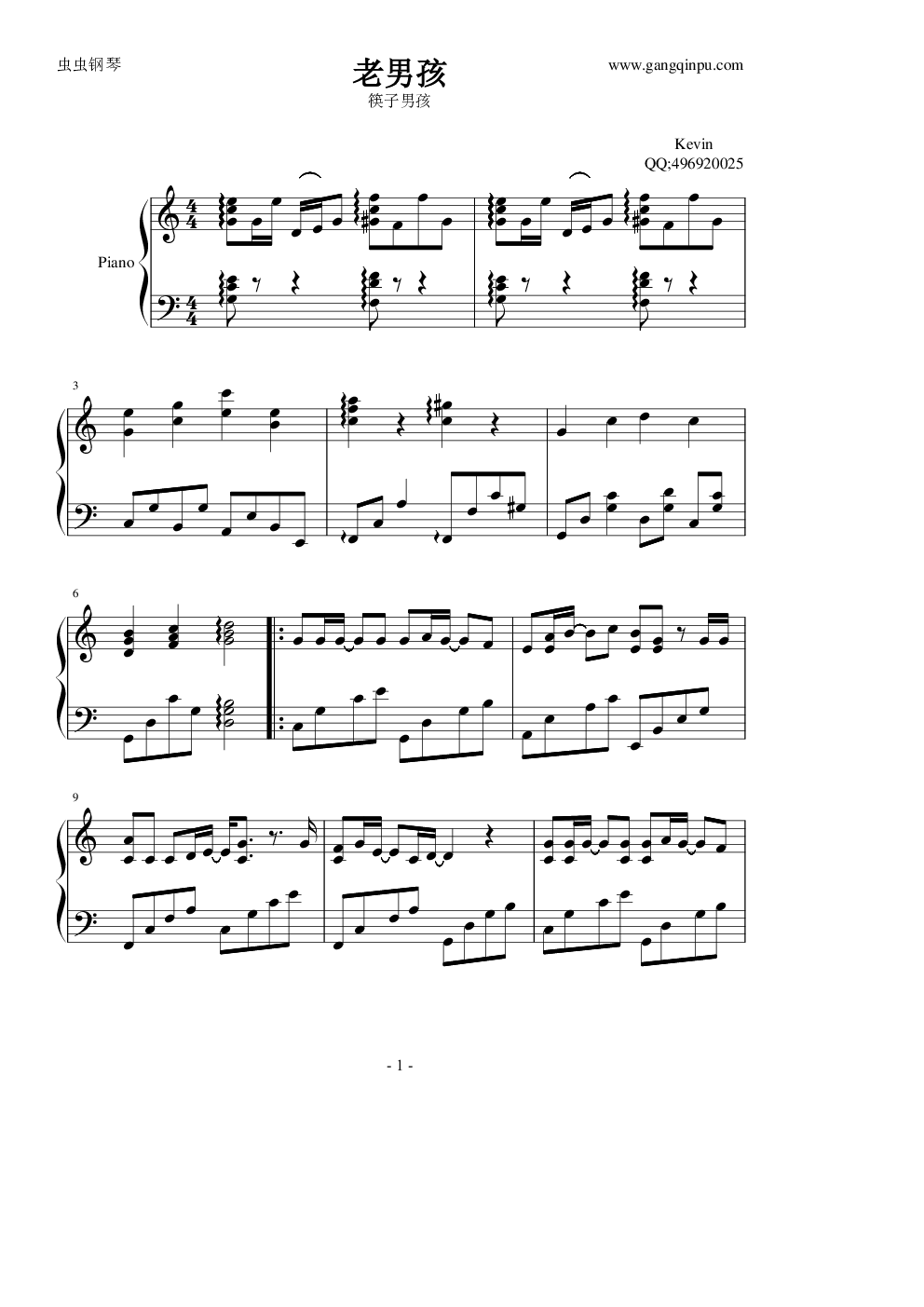 钢琴谱:老男孩(简易独奏版)