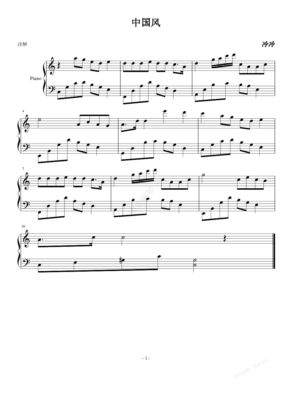钢琴谱:中国风