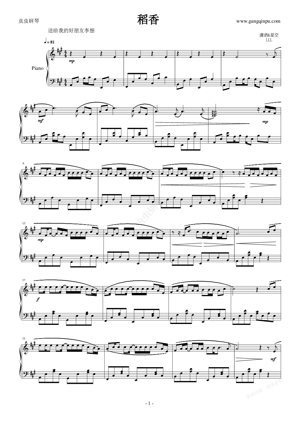 钢琴谱:稻香