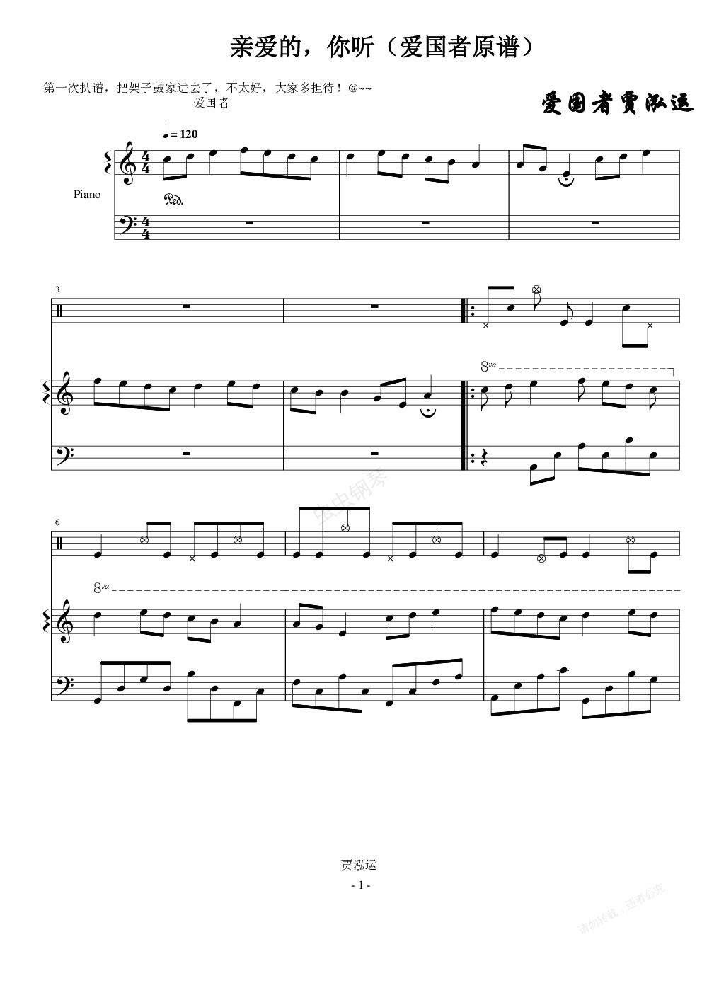 钢琴谱:亲爱的,你听(爱国者原谱)