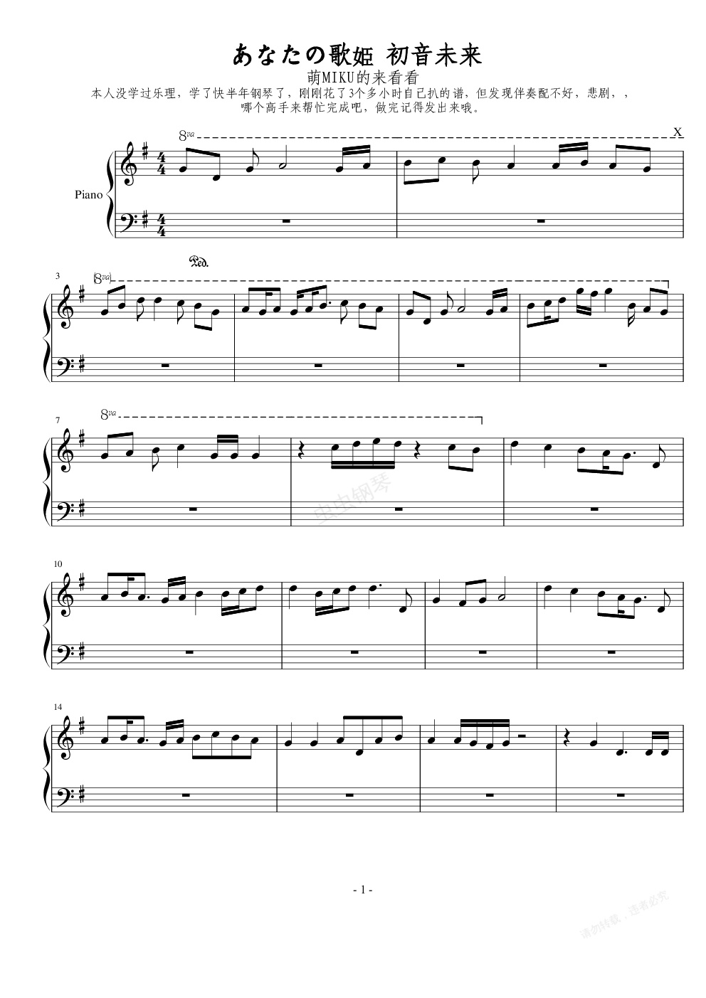 钢琴谱:初音未来 miku あなたの歌姫 未完成版