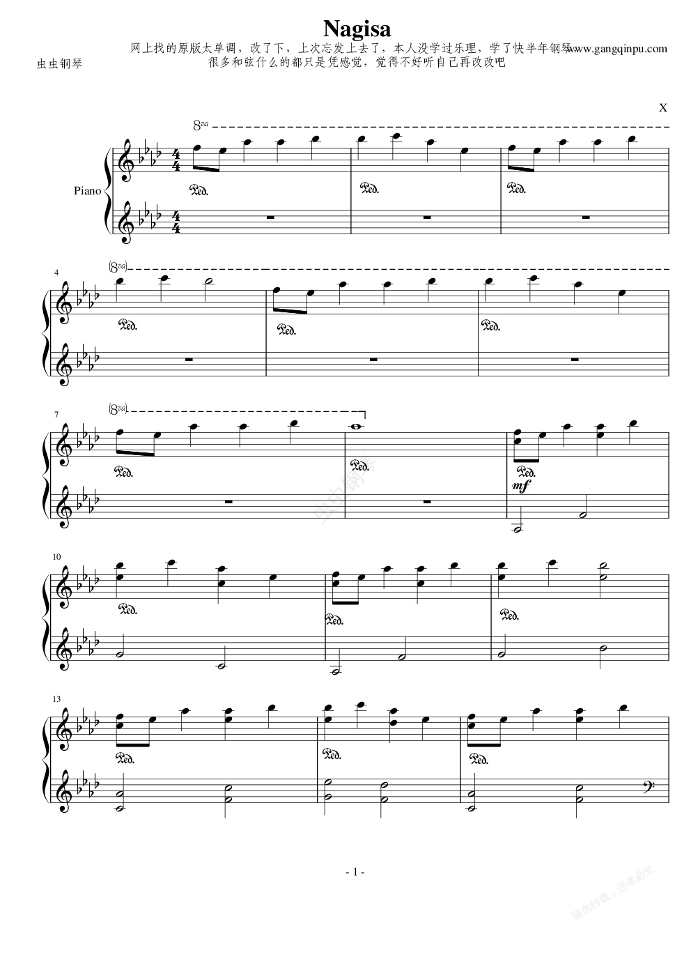 钢琴谱:CLANNAD 渚~坂の下の別れ Nagisa 修改版
