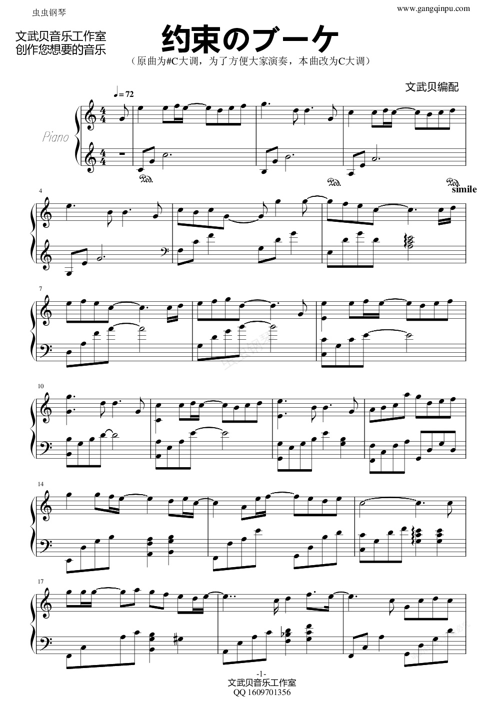 钢琴谱:约束のブーケ(C调版)