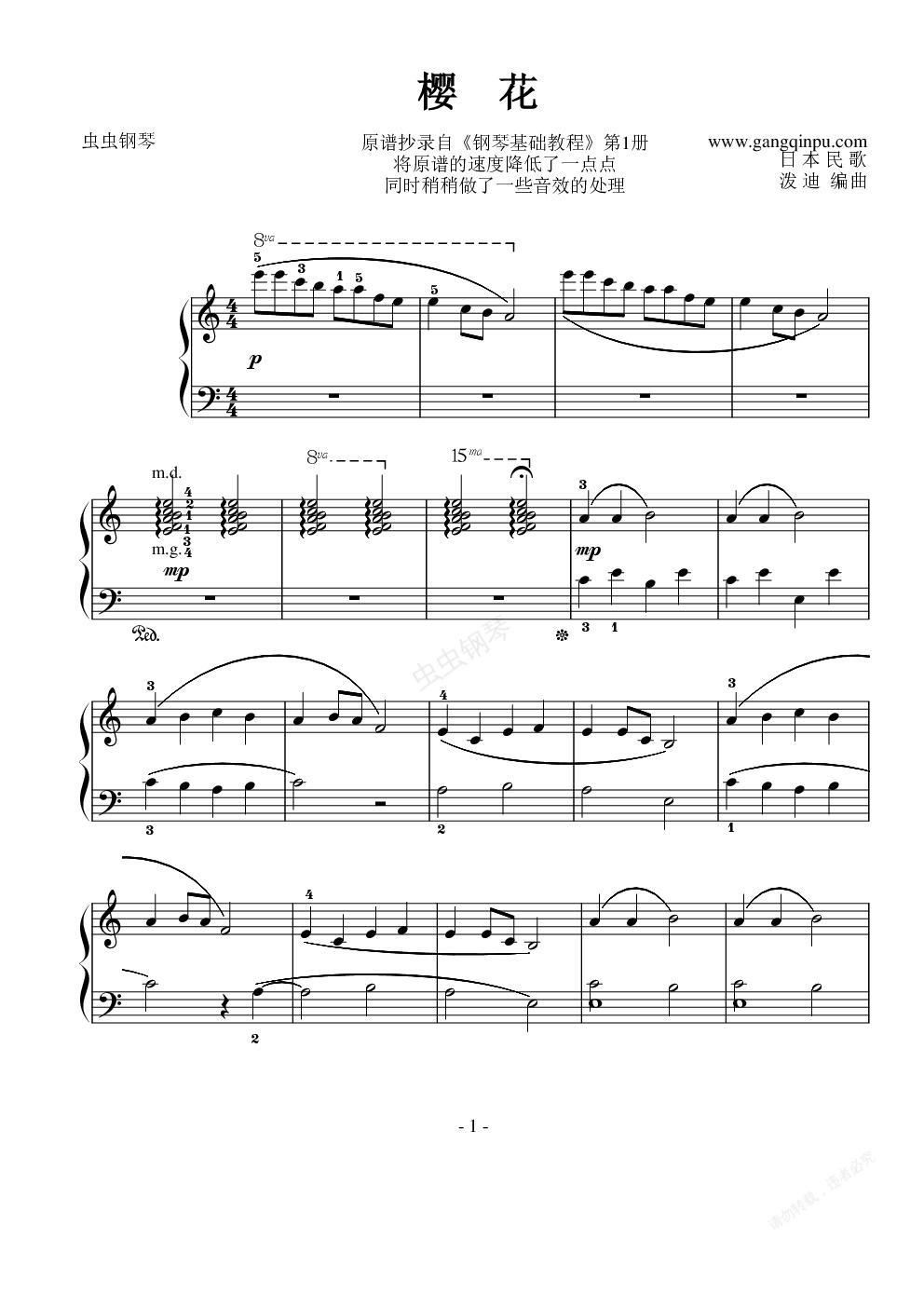 钢琴谱:樱花(钢琴基础教程1)