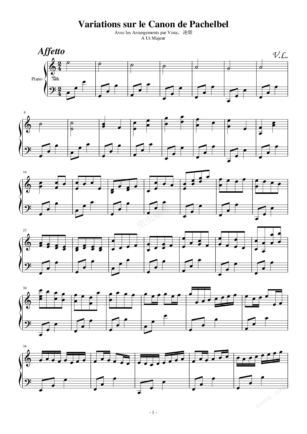 钢琴谱:我的卡农变奏曲