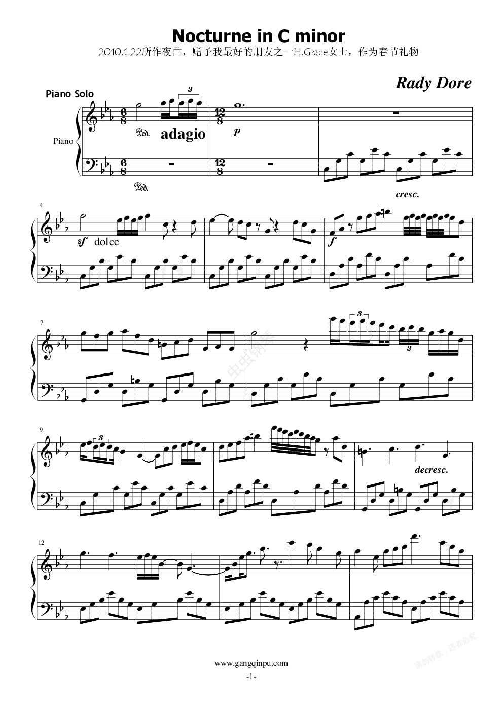 钢琴谱:Nocturne in C minor