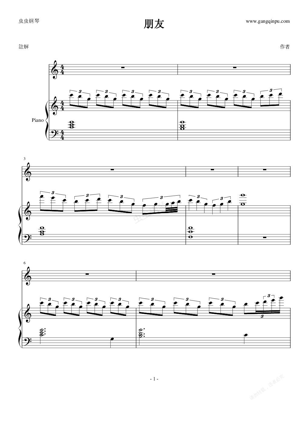 钢琴谱:朋友