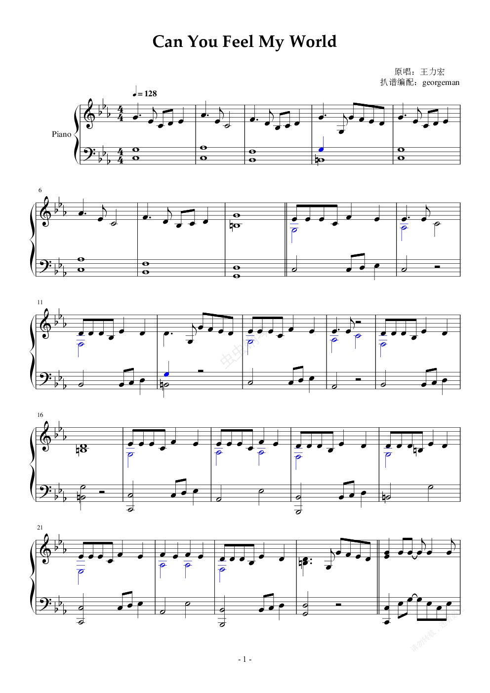 钢琴谱:Can you feel my world