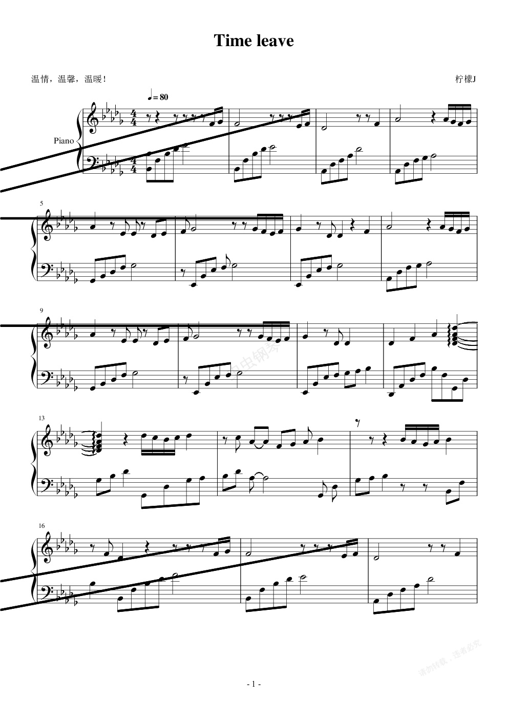 钢琴谱:Time leave
