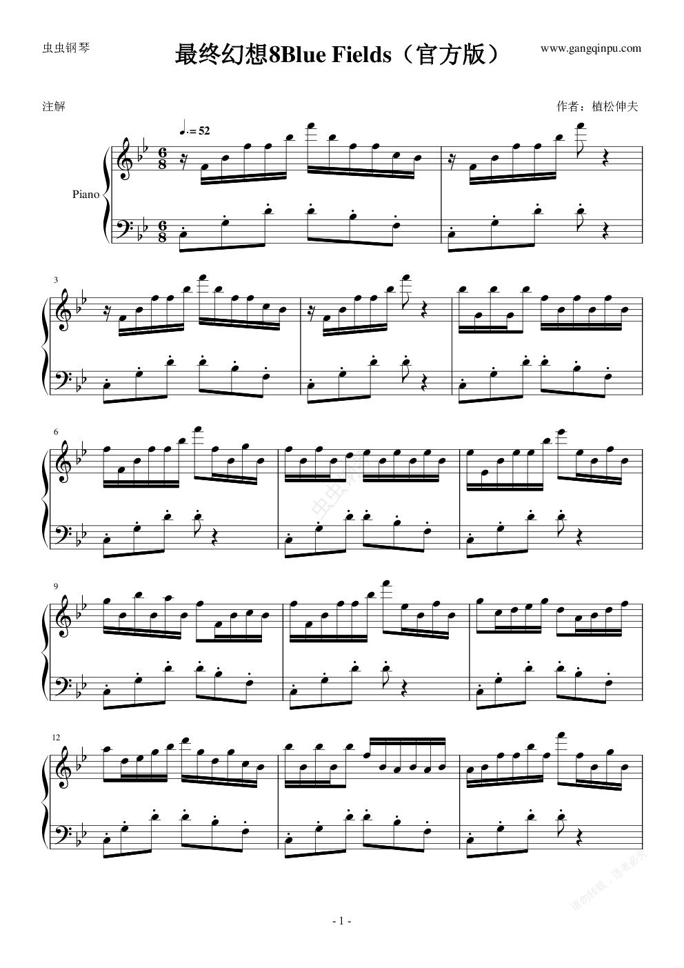 钢琴谱:最终幻想8Blue Fields(官方版)