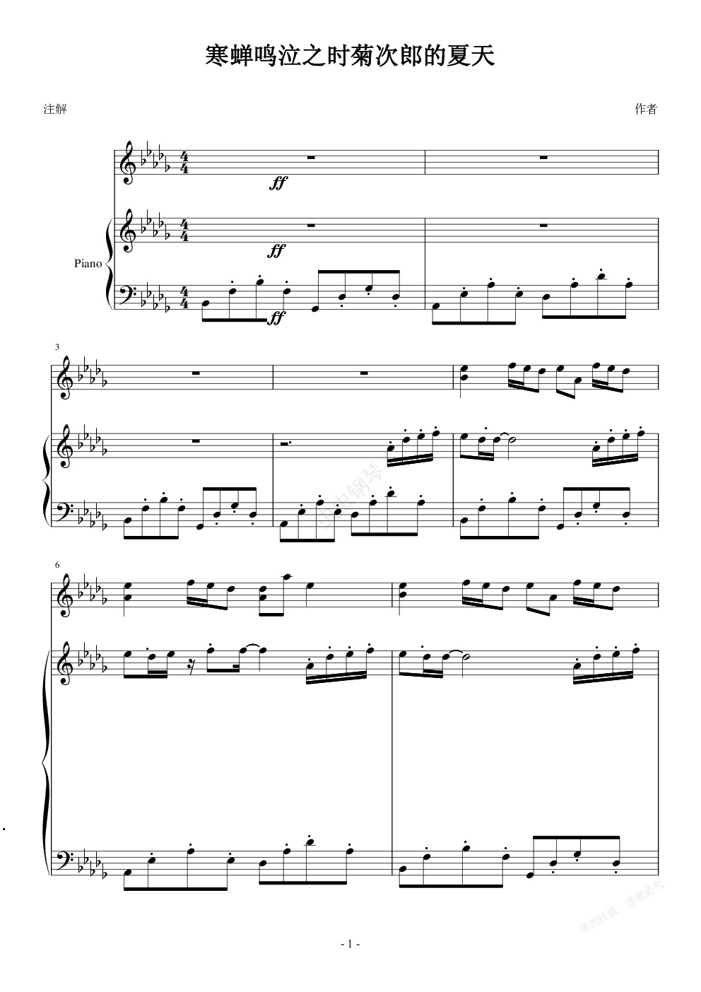钢琴谱:寒蝉鸣泣之时菊次郎的夏天