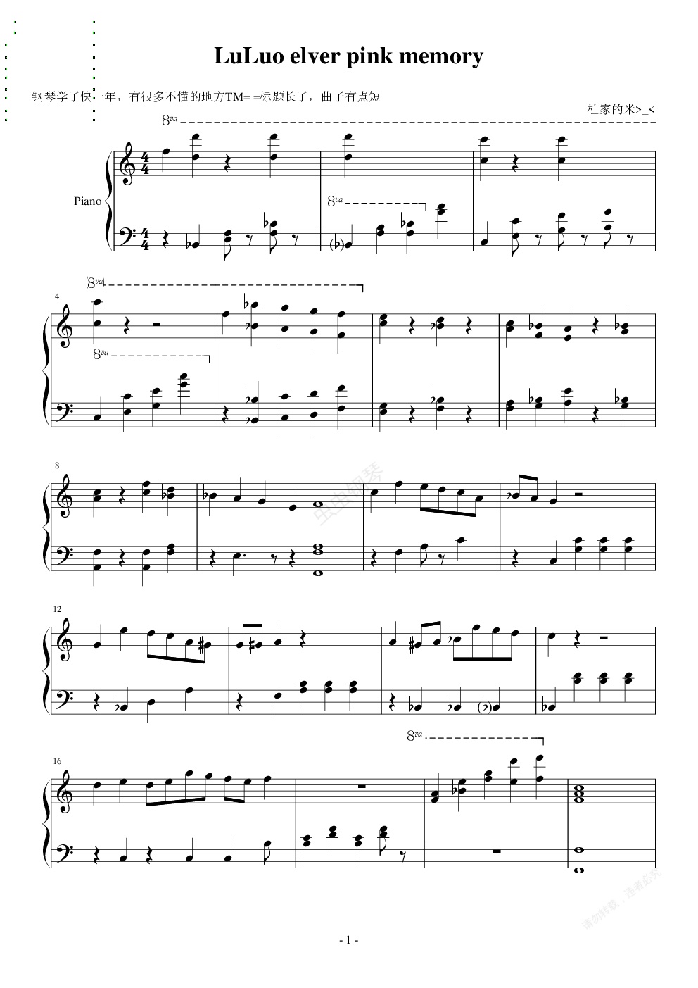 钢琴谱:LuLuo elves pink memory