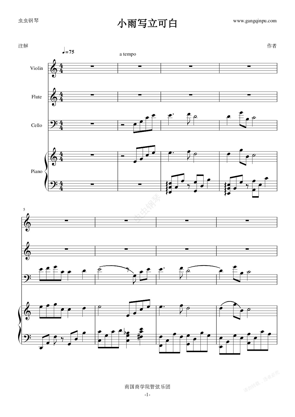 钢琴谱:小雨写立可白(四重奏)
