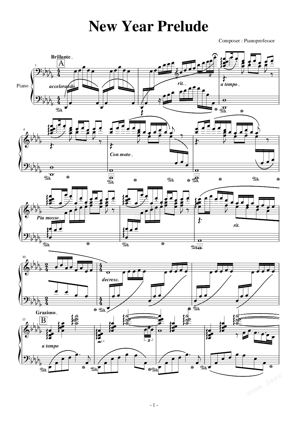 09年大作,10年完成未能制谱,故今年才放上。 曲子里面引用了少许晨曦阿西的暖春,每一天的月之幻,陈培勋的平湖秋月,杜鸣心的婚礼场面舞,王建中的百鸟朝凤,张朝的皮黄。皮黄那段在参赛的时候发了阵神经,搞了个左右手调性不吻合,被认为是“明显的不和谐错误”,故决定改掉。本来想在大年三十那天将曲子上传的,可惜那天有课,所以决定提前上传。最后,祝大家新年快乐~!
