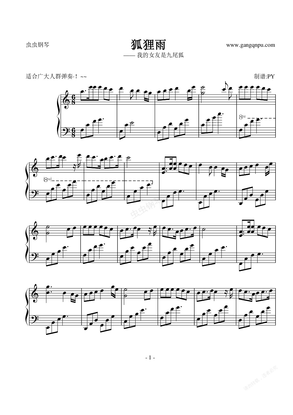 钢琴谱:《狐狸雨》我的女友是九尾狐