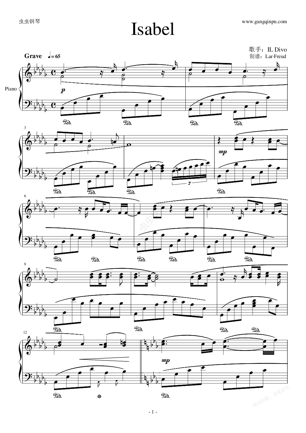 钢琴谱:Isabel