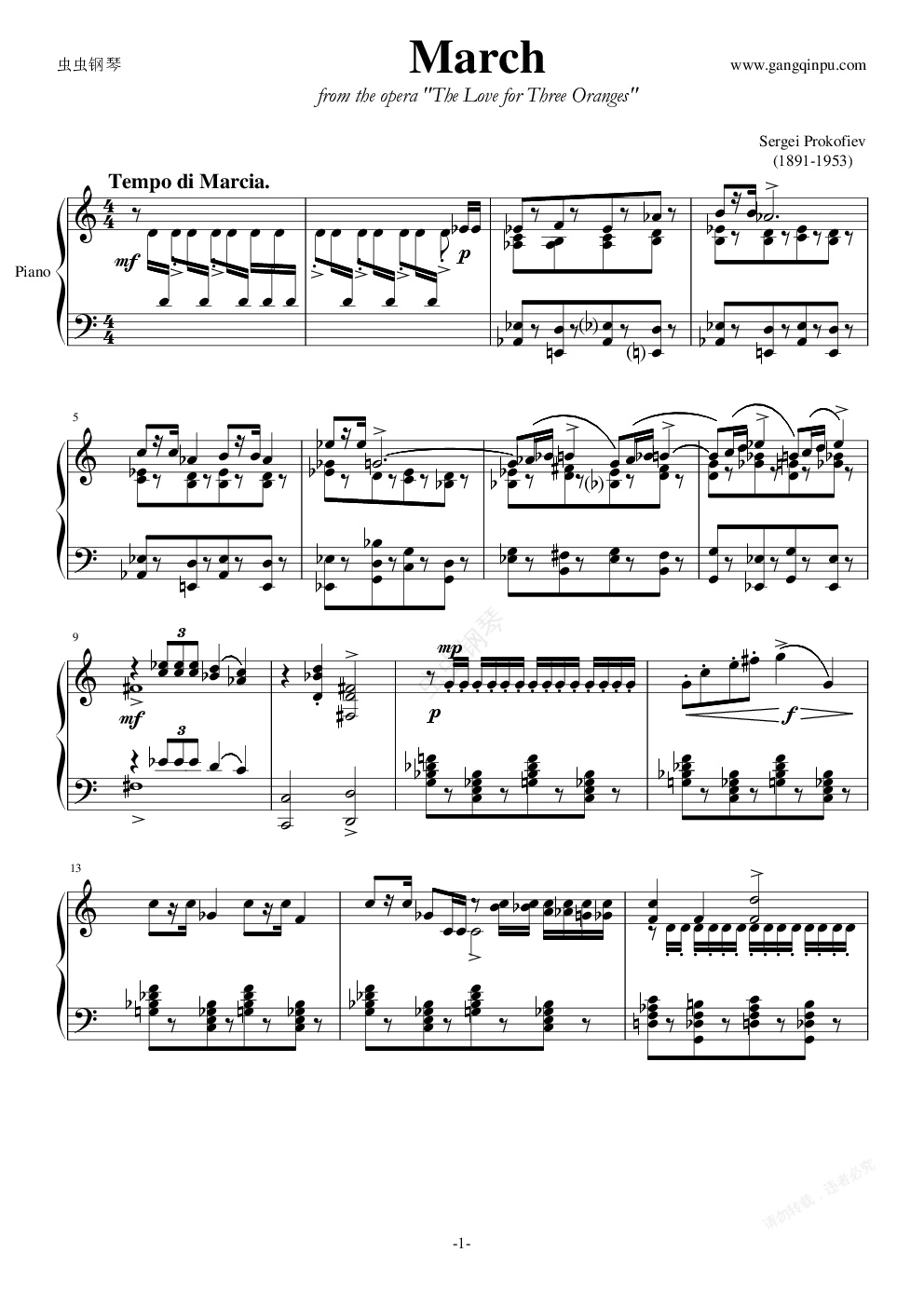 普罗科菲耶夫将其中的《进行曲》March 和《谐谑曲》 改写成钢琴独奏。