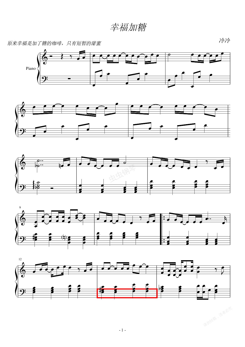 钢琴谱:幸福加糖