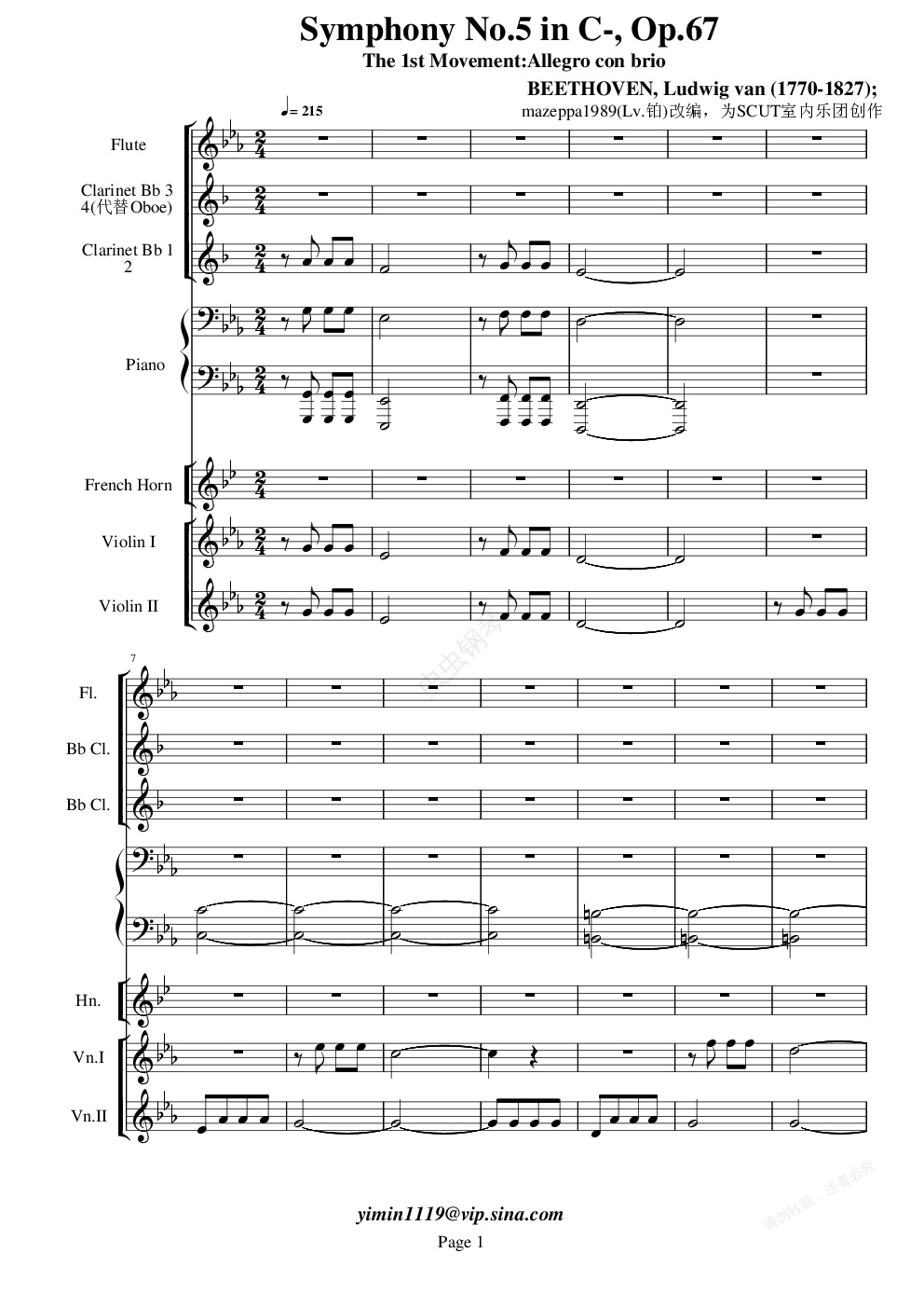 钢琴谱:贝多芬的C小调第五命运交响曲总谱