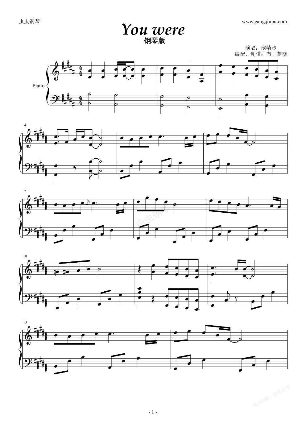 钢琴谱:You were