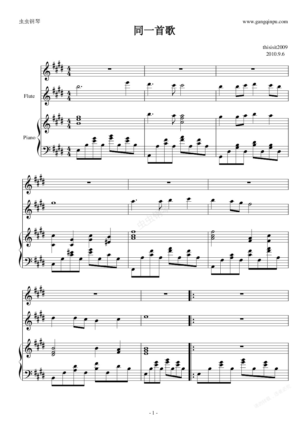 钢琴谱:【经典老歌】同一首歌(小型伴奏谱兼演奏谱)