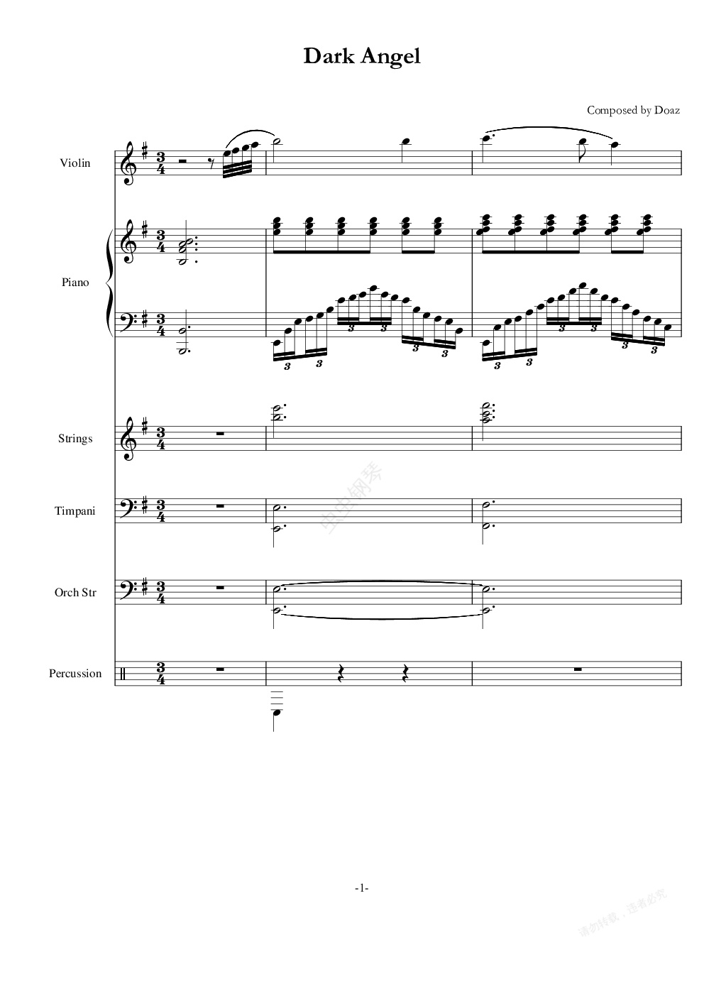 钢琴谱:Dark Angel