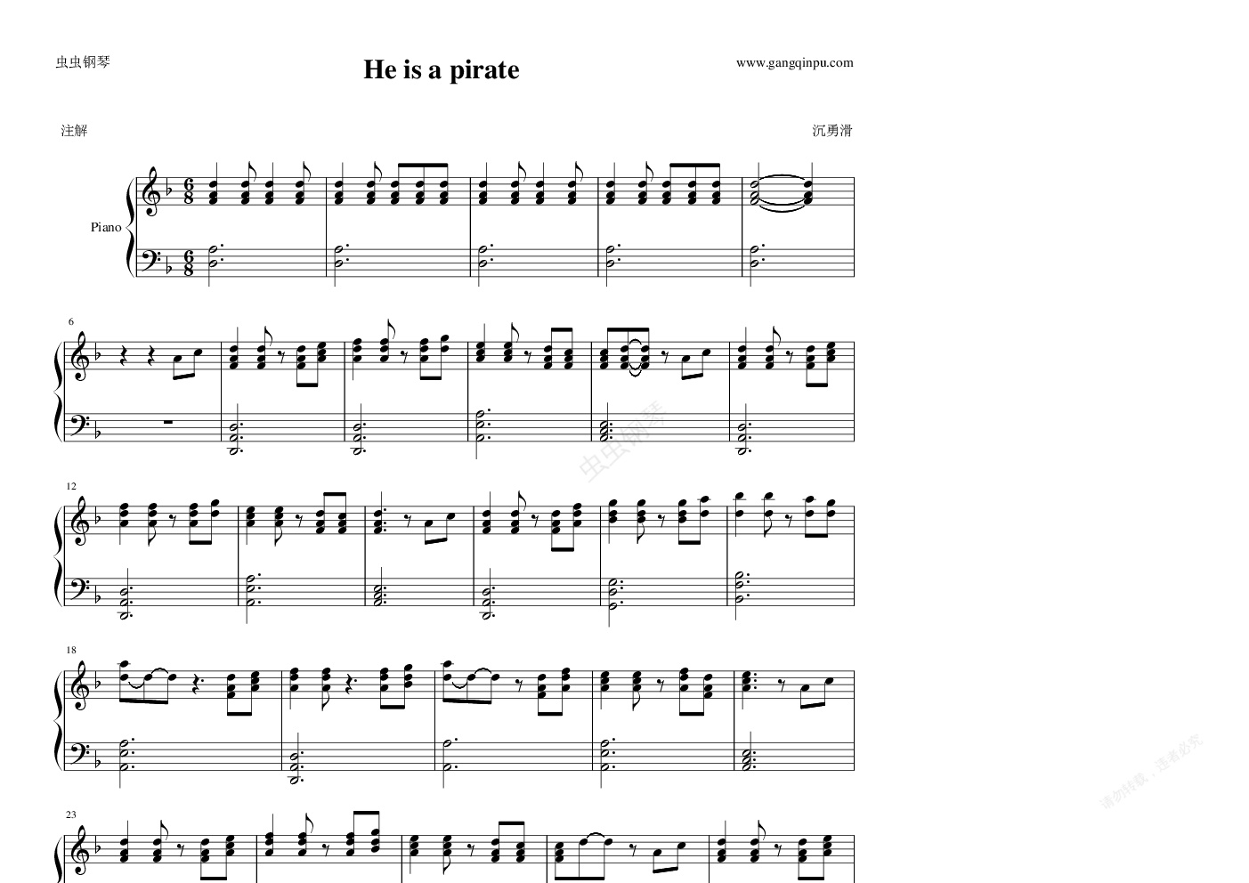 钢琴谱:He is a pirate