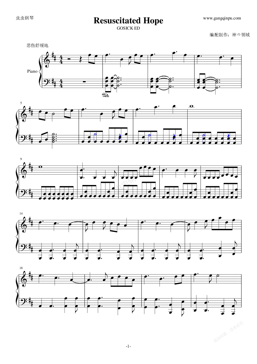 钢琴谱:GOSICK_ED-Resuscitated Hope(苏醒的希望)