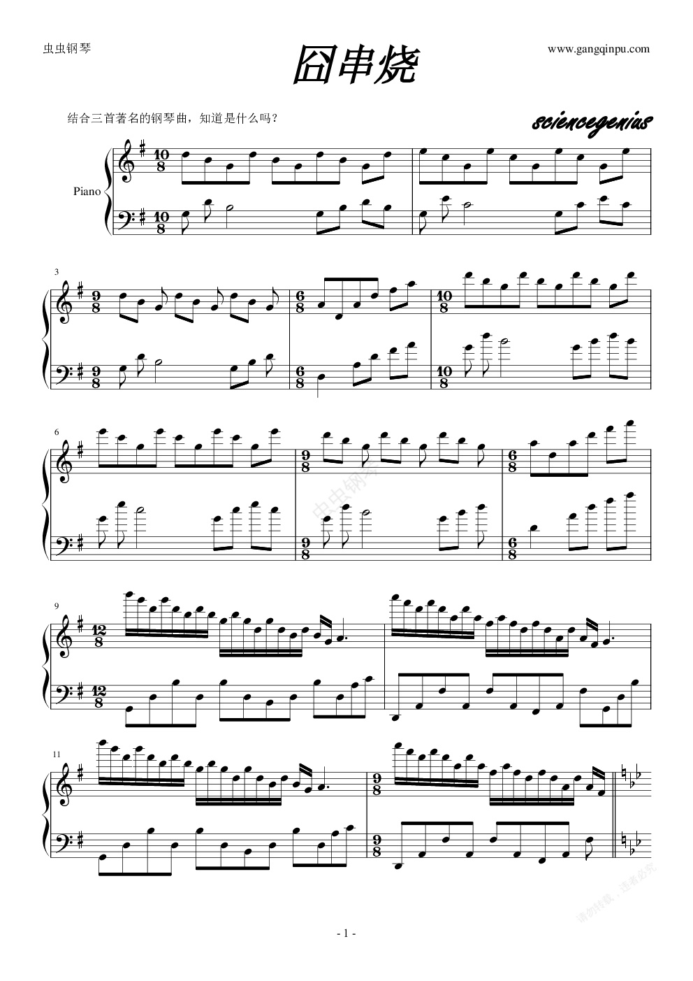 钢琴谱:囧串烧(童年的回忆&雪之梦&欢乐的牧童)