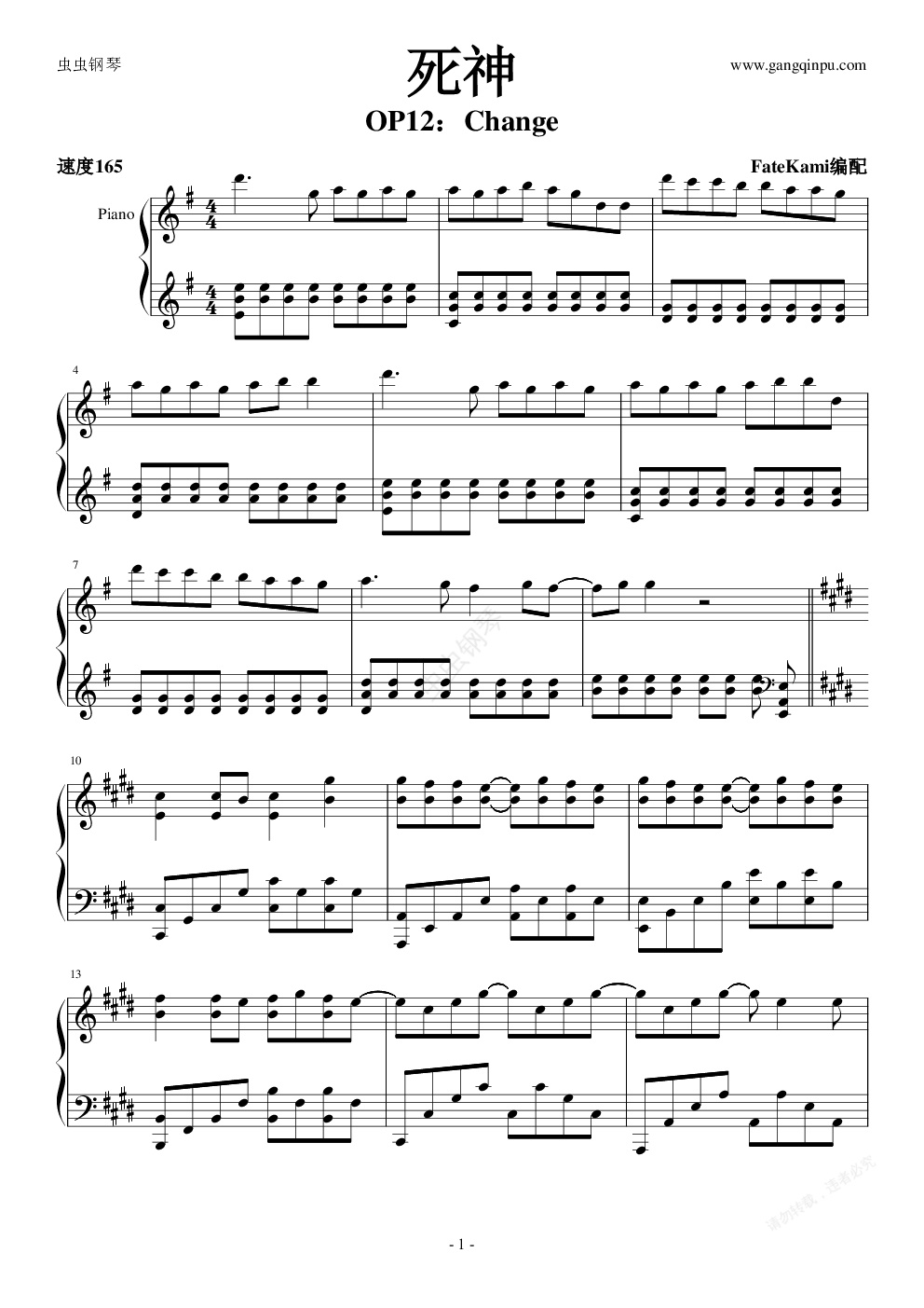 钢琴谱:Change——死神