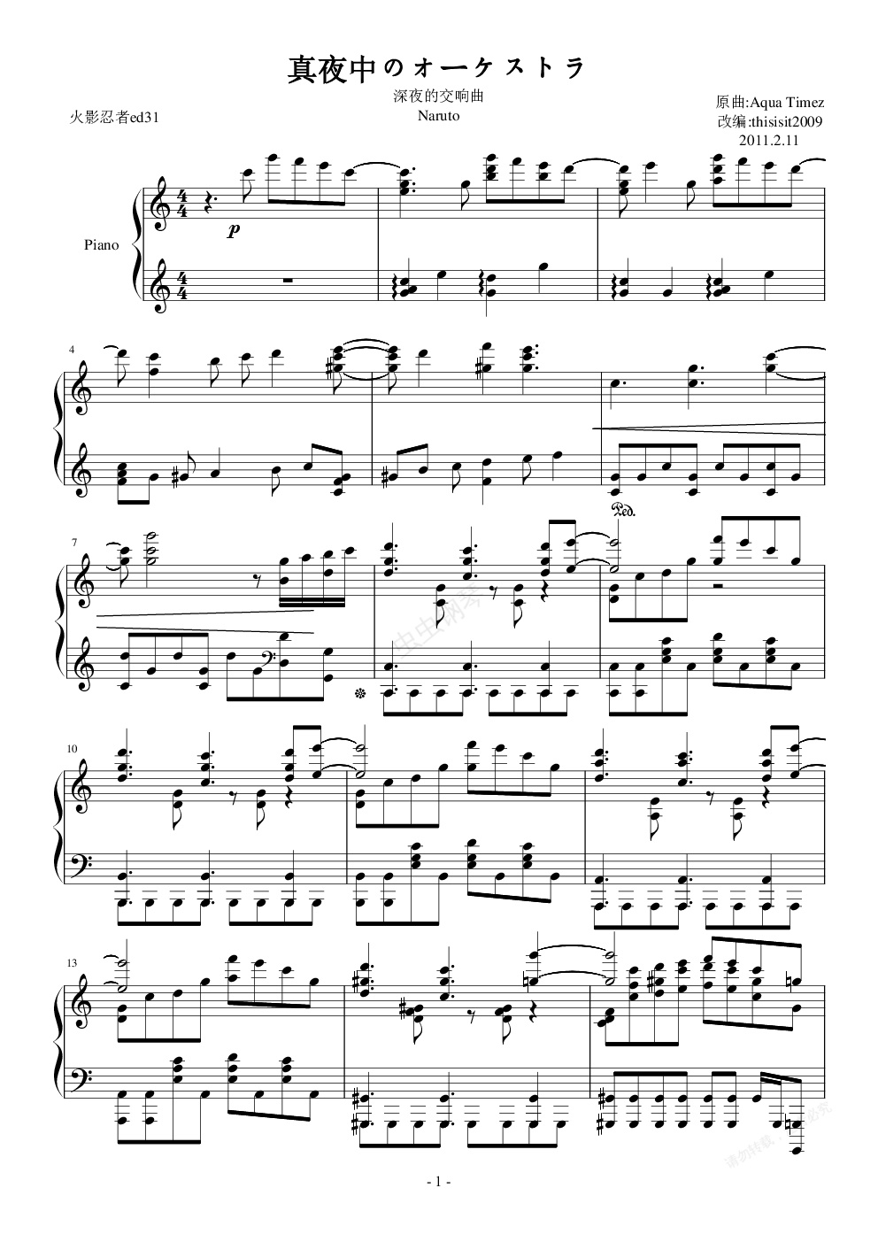 钢琴谱:【】火影OVA特典,疾风传最新ed【真夜中のオーケストラ】钢琴独奏版