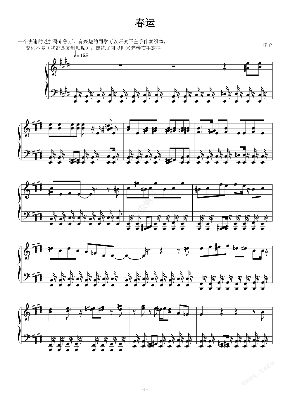 。。。不知道大家是否在春运的时候去过火车站。。基本就是这样的拉,各种面孔,虽然忙忙碌碌,满头大汗提着打包小包,但是掩盖不住的回家的快乐会从脸上流露出来。 芝加哥蓝调,左手形式比较单一,右手比较自由。本曲意在抛砖引玉,为大家所参考。